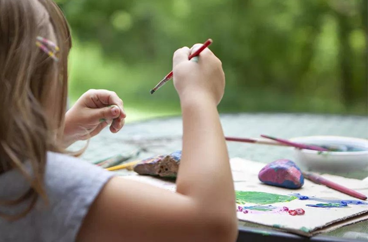 Kids can use paint brushes to paint rocks, turning them into fun characters or painting patterns of their choosing. Start by finding the perfect rocks. They should be smooth and roughly 2 to 3 inches across, so they're large enough to have a decent surface area but not so large that they're unwieldy.
